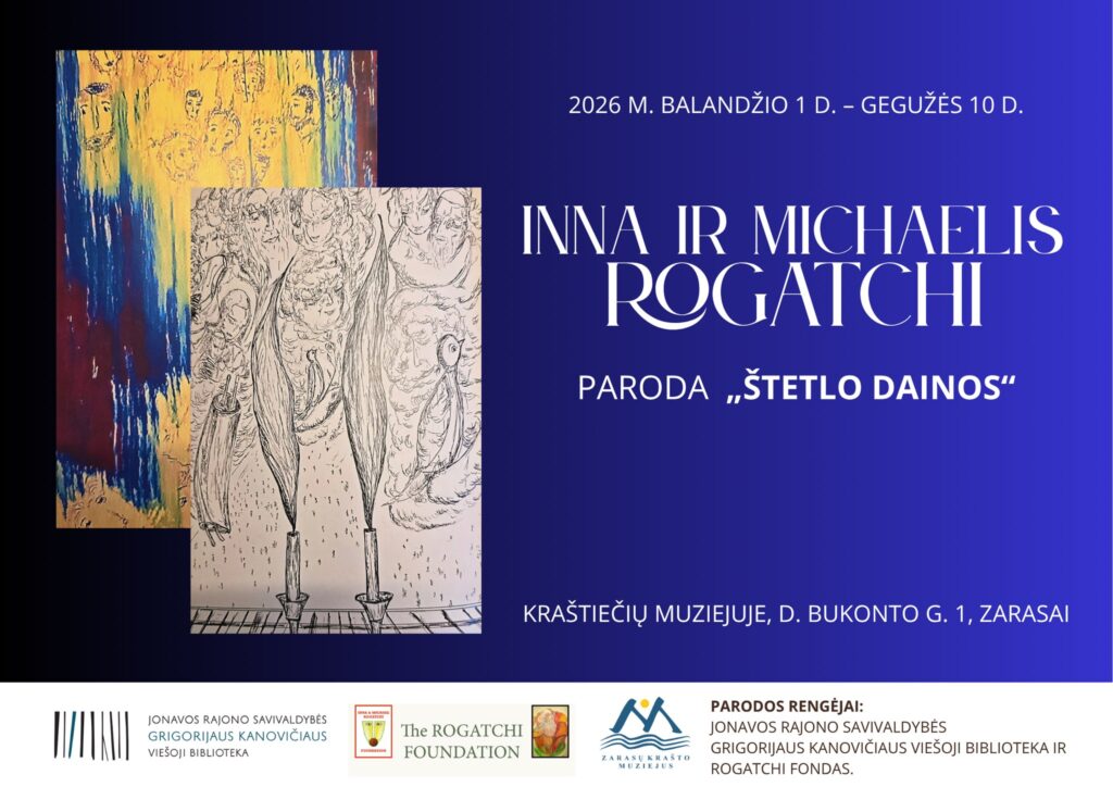 The venue for the Michael and Inna Rogatchi Shtetl Songs exhibition ( April 1 – May 10th, 2026 ) is the Zarasai County Museum, Lithuania. The museum is a well-maintained centre of arts and culture in the north-eastern part of Lithuania, at the centre of its beautiful lake region known as Little Switzerland.