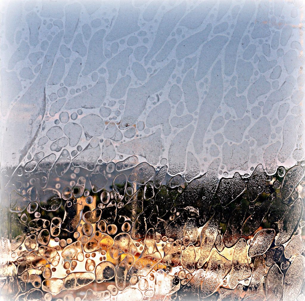 Sound-beat I is modern work which aims to create ‘a portrait’ of a sound, and not just a sound, but the one of a beat of jazz. That’s why the inner dynamic of the work is quite essential here. The composition of the work also visually recreates the mode of a jazz, not only with its syncopes, but mostly with the main sensation of jazz as it is understood by Inna, its suddenness.  Suddenness is a character and gift of jazz, and the artist aimed to portray it in her work. Coloristic-wise, the work is created in cold colours, echoing the coolness of jazz. Importantly,  none of the colors used by Inna  is presented in the work in a direct way. Each of them has a number of shades ( there are five different blue, four greens,  three white and two yellow colours) presenting complexity, smoothness, inter-connectivity and that special sensation of jazz, that always surprising Sound-beat of it.